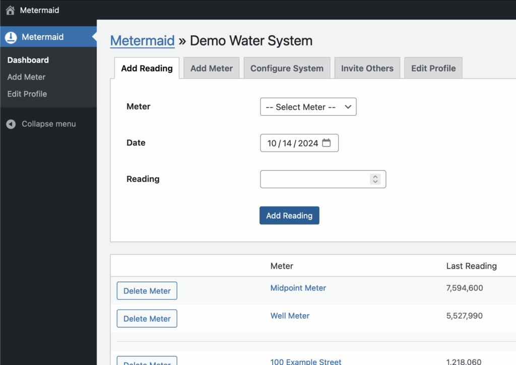 Use Metermaid to track water usage across multiple meters. Perfect for community water systems.